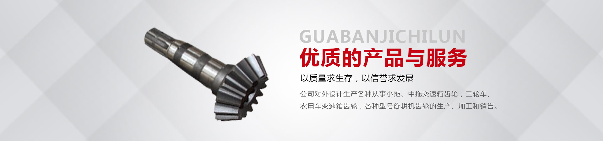 本廠位于省會東南60公里的全國重點鎮——大陸村鎮。本廠在市場內設有銷售公司,經銷工程機械;農用拖拉機;農機具的整機和全車配件。市場緊靠308國道,距青銀高速寧晉路口14公里,交通十分方便。主要從事小拖、中拖變速箱齒輪,三輪車、農用車變速箱齒輪,各種型號旋耕機齒輪、收獲機械變速箱齒輪的生產、加工和銷售。同時加工定做各種直齒輪,傘齒輪,斜齒輪,鏈輪,齒輪軸等機械產品。廠內檢測手段齊全。十幾年來與河北、北京、山東、安徽、河南、吉林、陜西、山西、寧夏、黑龍江、遼寧等省市的企業建立了穩(wěn)固的業務關系。產品質量穩(wěn)定、價格合理、供貨及時。